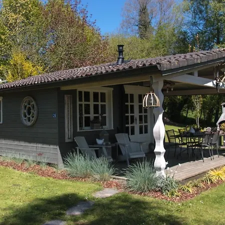 De 1-slaapkamer Chalet D'Hotes - Les Daims - Petit Dejeuner Inclus Fauvillers verwacht gasten op een terras met kitchenette.